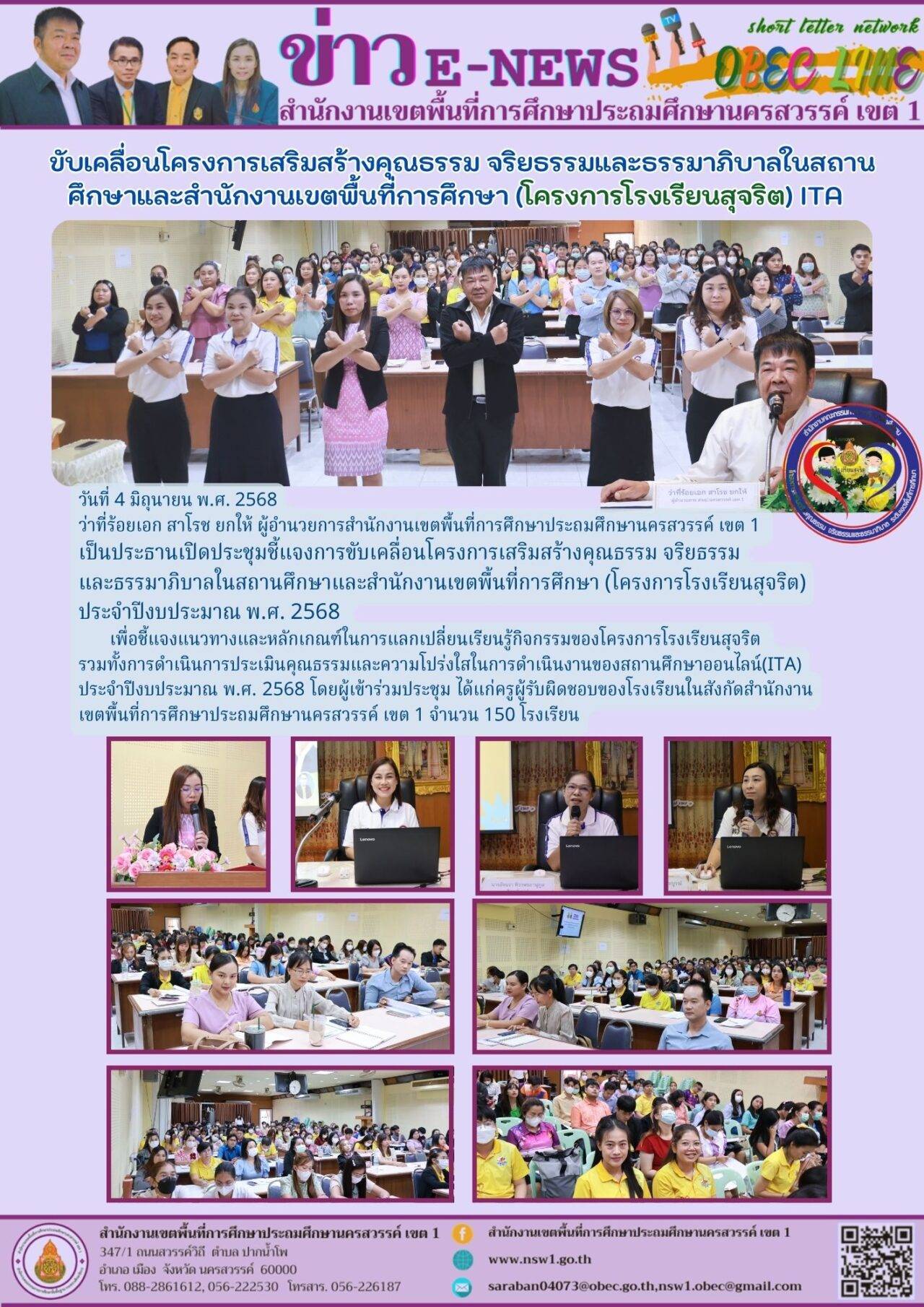 การขับเคลื่อนโครงการเสริมสร้างคุณธรรม จริยธรรมและธรรมาภิบาลในสถานศึกษาและสำนักงานเขตพื้นที่การศึกษา (โครงการโรงเรียนสุจริต) 04/06/2025