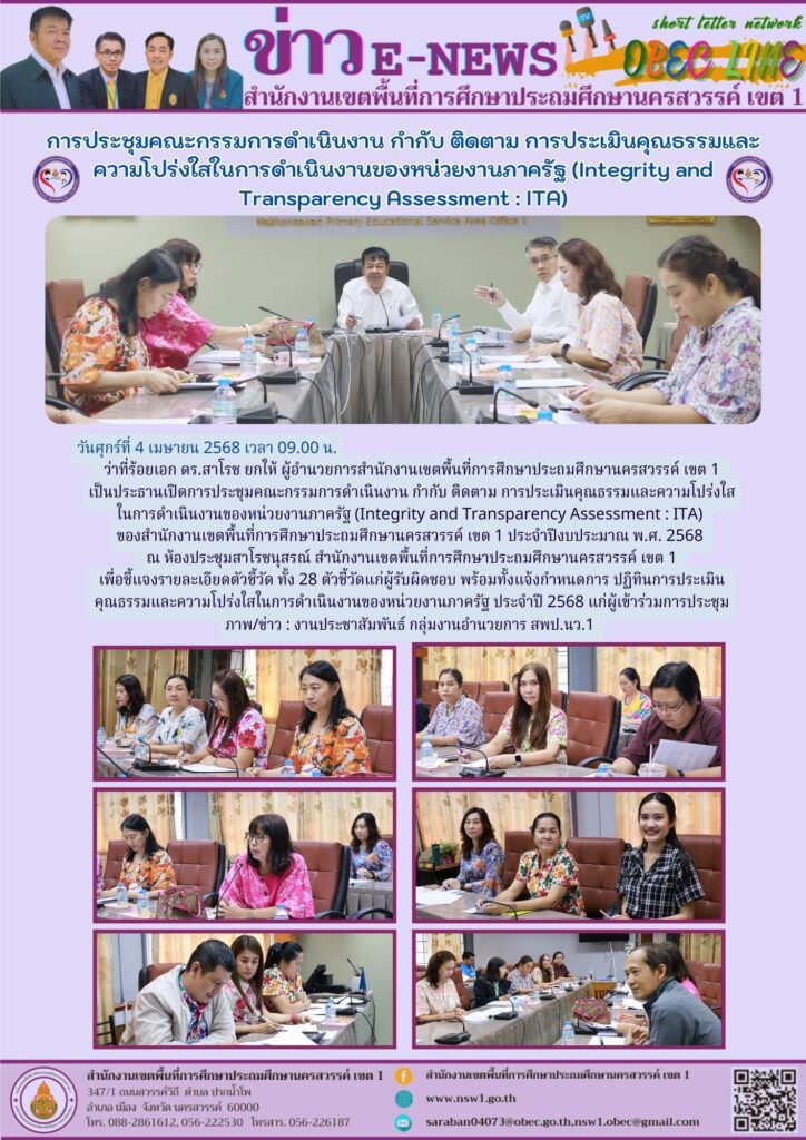 การประชุมคณะกรรมการดำเนินงาน กำกับ ติดตาม การประเมินคุณธรรมและความโปร่งใสในการดำเนินงานของหน่วยงานภาครัฐ (Integrity and Transparency Assessment : ITA) 05/04/2025