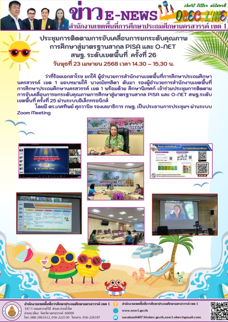 การประชุมติดตามการขับเคลื่อนการยกระดับคุณภาพการศึกษาสู่มาตราฐานสากล PISA และ O-Net ครั้งที่ 26 25/04/2025
