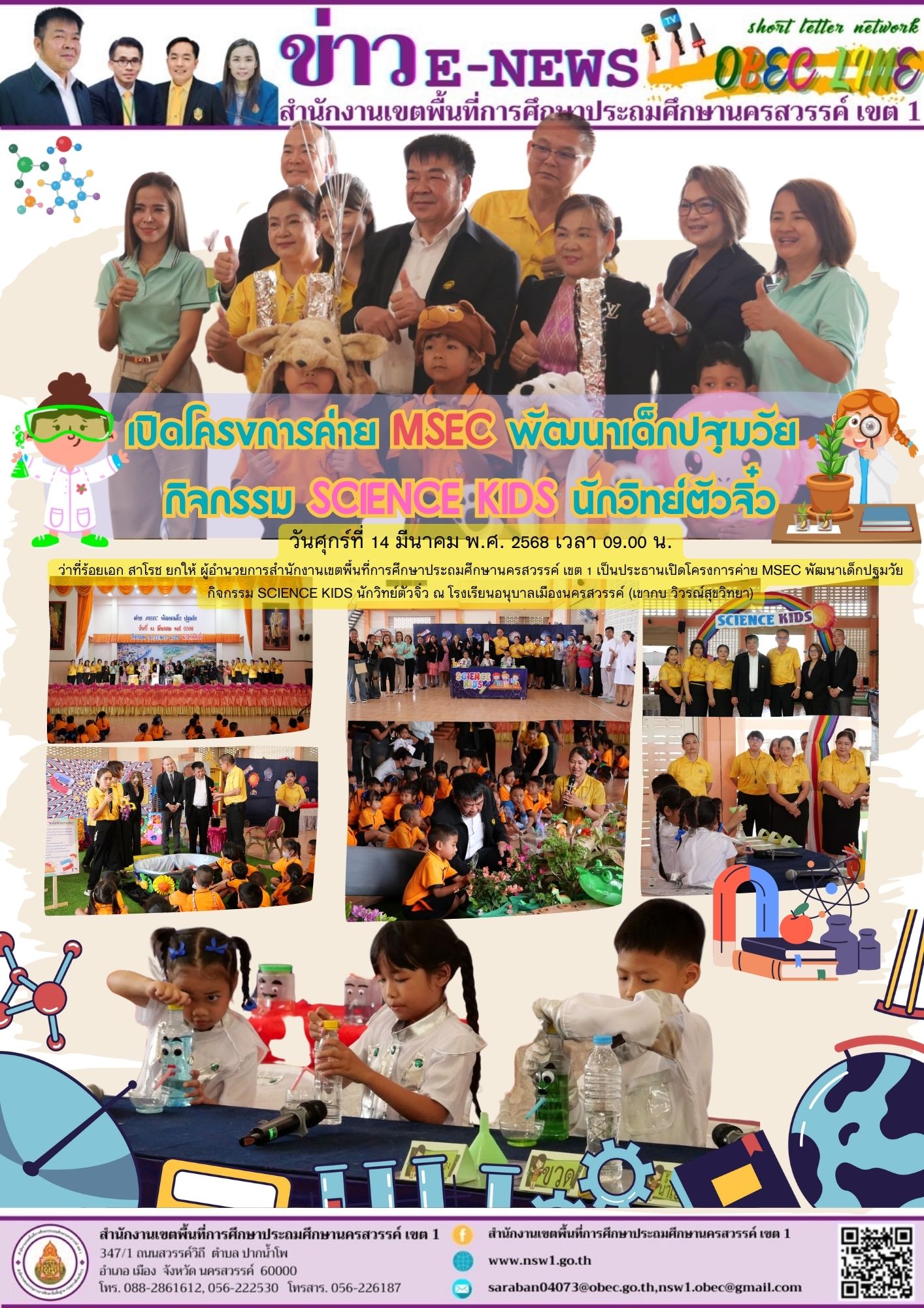 เปิดโครงการค่าย MSEC พัฒนาเด็กปฐมวัย กิจกรรม SCIENCE KIDS นักวิทย์ตัวจิ๋ว โรงเรียนอนุบาลเมืองนครสวรรค์ (เขากบ วิวรณ์สุขวิทยา) 14/03/2025