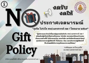 สพป.นครสวรรค์ เขต 1 ประกาศเจตนารมณ์ เรื่อง “สุจริต โปร่งใส สำนักงานเขตพื้นที่การศึกษาประถมศึกษานครสวรรค์ เขต 1 ใสสะอาด 2569 ” และ “งดรับ งดให้” ของขวัญ ของกำนัลทุกชนิดจากการปฏิบัติหน้าที่ (No Gift Policy 2569)