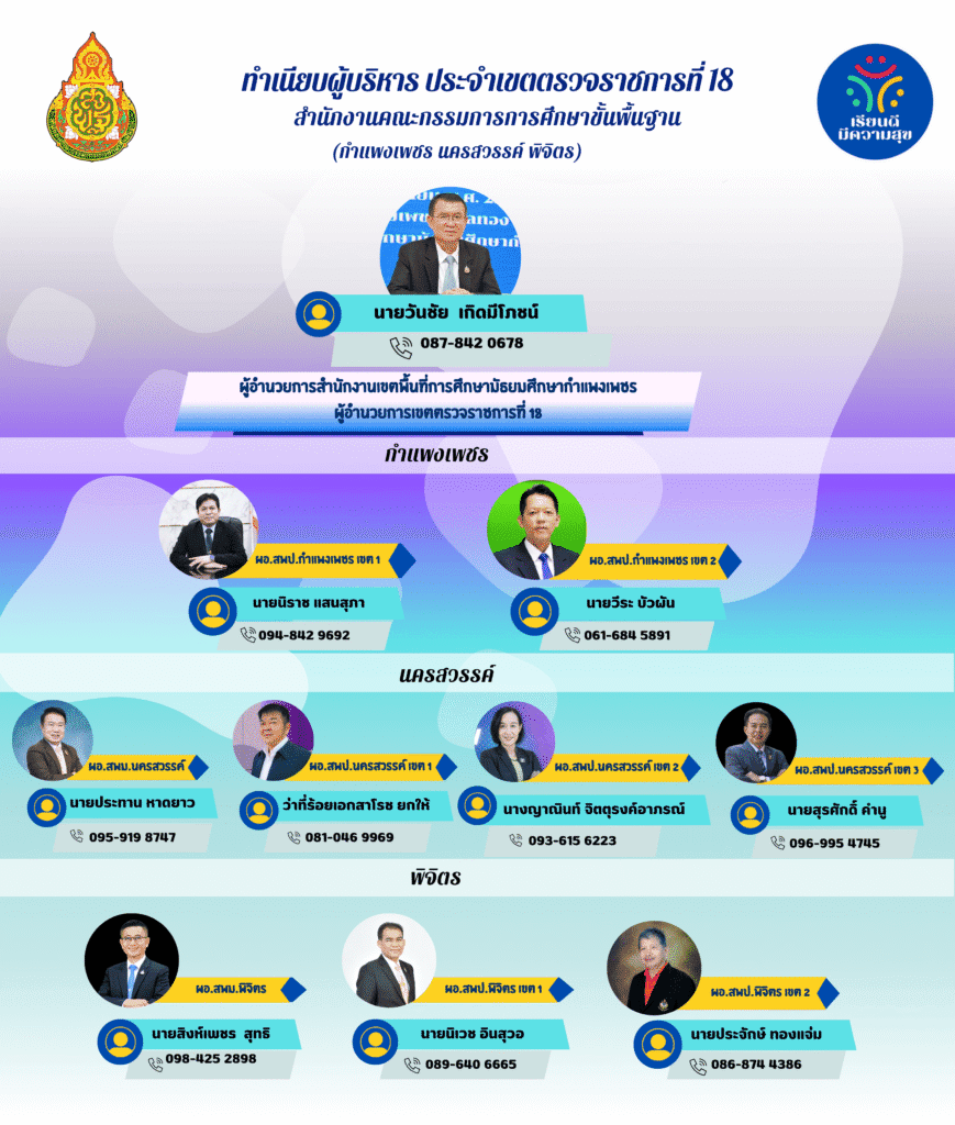 ทำเนียบผู้บริหาร ประจำเขตตรวจราชการที่ 18