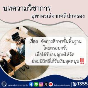 จัดการศึกษาขั้นพื้นฐานโดยครอบครัว” เมื่อได้รับอนุญาตให้จัด ย่อมมีสิทธิได้รับเงินอุดหนุน 06/06/2025 Post Views 309 FacebookFacebookXXLINELine