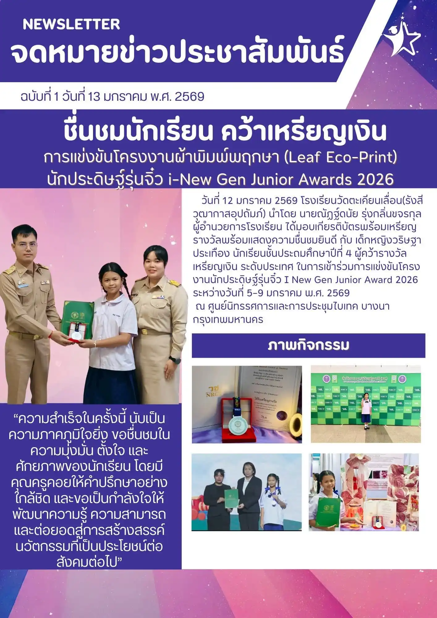 จดหมายข่าวโรงเรียนวัดนิเวศวุฒาราม